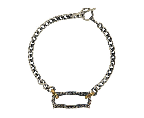 With it's modern, minimalist style this Rusty Thought bracelet adds an earthy, casual elegance to any collection. The open window bar connects to the oxidized sterling silver chain with 18K yellow gold links. Wear this alone or mix it in with your everyday favorites for a personalized, eclectic look.