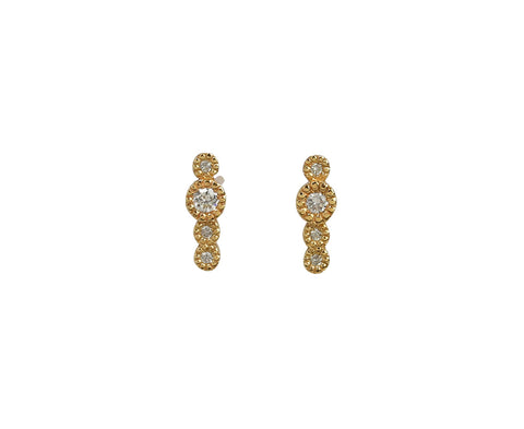 With their quiet elegance and restrained sophistication, these Jennie Kwon Journey earrings are a perfect option for every day. Four brilliant cut white diamonds are set in delicately textured bezels of 14K yellow gold to create a shimmering arc of sparkle. Perfect for a first, second or even third piercing, these are an interesting alternative to the traditional diamond posts.