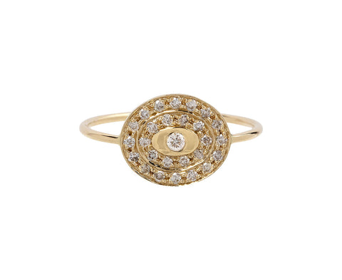 Wear this Celine Daoust diamond ring as your everyday talisman. Meant to represent stars as symbols of infinite energy and a map of lights in the universe, the 14K yellow gold and diamond encrusted oval is set at the center of the 14K yellow gold band. Statement-making no matter what finger you wear it on.