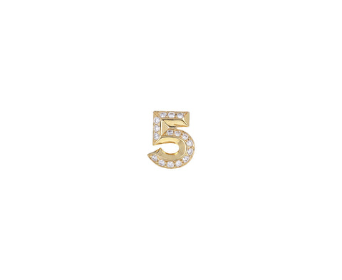 Personalize your look with this Harwell Godfrey single diamond earring. Representing the number 5, the sparkling diamonds are set in 18K yellow gold and attach to a post back. Pair it with another single earring for an edgy, asymmetrical style or wear it in a second or third piercing.