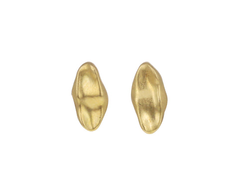 Modern and minimal, these Nada Ghazal earrings are the ideal pair for your first or second piercing. Elongated ovals of 18K yellow gold attach to 18K yellow gold post backs. An excellent alternative to the ubiquitous gold stud.