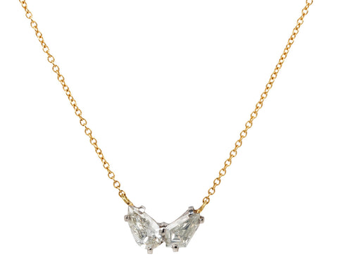 With an unparalleled sparkle and modern design, this Todd Pownell necklace is a stunning alternative to the traditional design. Two shimmering diamonds - one pear shaped and one step cut - are set in a platinum setting at the center of the 18K yellow gold chain. Whether worn alone or layered with your other favorites, it is a contemporary classic.