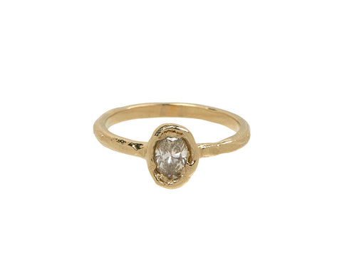 Inspired by the medieval jewelry found along her family lands in Scotland, this Ellis Mhairi Cameron diamond solitaire perfectly balances earthy design with brilliant sparkle. The oval, pale champagne diamond is set in an organic 14K yellow bezel at the center of the softly textured 14K yellow gold band. Pair it with one of her bands for an understated set.