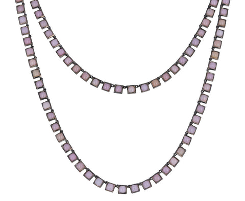 Wear this Nak Armstrong necklace long and layered with your other favorites or doubled up for a tone-on-tone look. From his Nakard Collection, each pink opal mosaic is framed in contrasting black rhodium plated sterling silver to create each link. It fastens with a safety clasp.