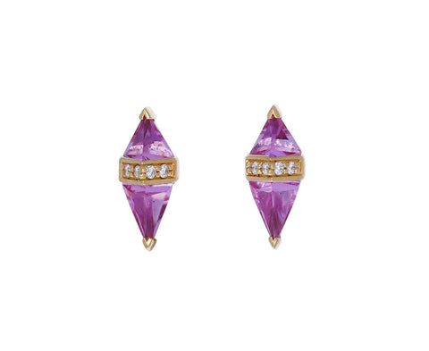 With their edgy, geometric design, contrasting colors and hint of sparkle, these Sorellina earrings are a modern interpretation of basic posts. The angular segments of pink topaz are separated by a tiny band of sparkling white diamonds set in 18K yellow gold. Wear them as your main earrings or in a multiple piercing.