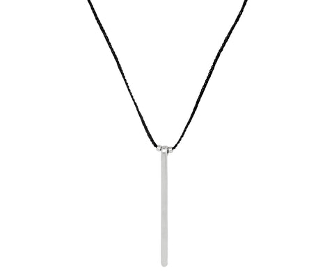 Long and lean, simple and stunning, Sexy Sliver makes a statement. The thin, hand-finished silver sliver measures 2 3/4" in total length and is connected to the center of a 16" hand-crocheted necklace of durable black TENARA®. It fastens with Jill's signature toggle closure.