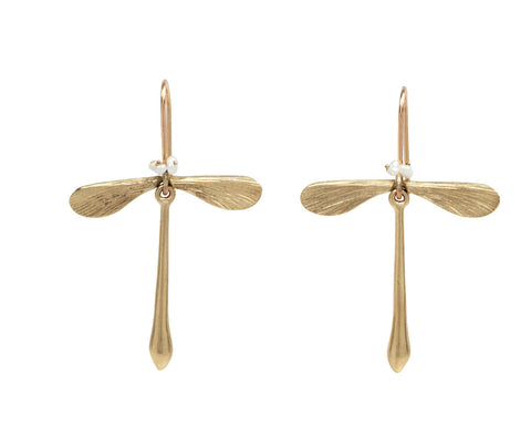 With their playful, minimal design, these Annette Ferdinandsen earrings have the perfect amount of subtle movement. The tiny 14K yellow gold damsel fly hangs from the 14K yellow gold ear wires and is accented with two tiny pearl eyes. A fun way to add a hint of earthy design to any outfit.
