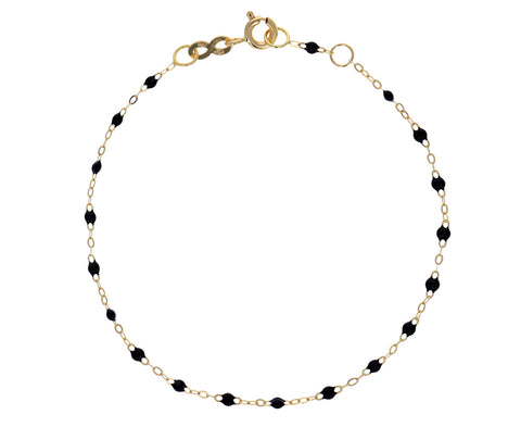 Captivating in its subtle sparkle and neutral color palette, this Gigi Clozeau bracelet exudes a quiet luxury. Set along the 18K yellow gold chain are tiny drops of black resin. Alone or layered with your other favorites, it adds a modern, timeless feel to any collection.