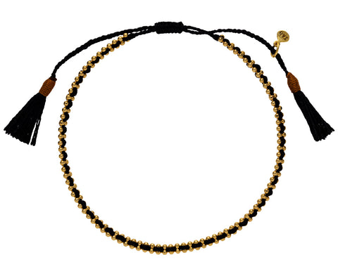 Casual, cool and perfect for everyday, this Tai bracelet makes a statement despite its diminutive size. The thin, woven strand of black nylon is adorned with simple gold vermeil detailing. It fastens with an adjustable slide closure making it an easy addition to any look.