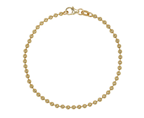 Classic and stunning in its retro inspired design, this Stephanie Windsor bracelet is a fluid strand of 14K yellow gold balls. Perfect worn alone but ideal for layering with your other favorites. It fastens with an 14K yellow gold lobster clasp.