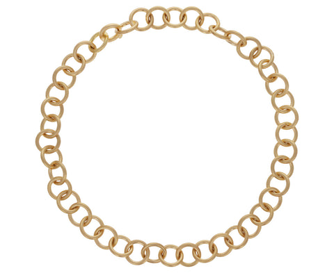 With its modern, understated design, this Shihara bracelet also offers a perfect everyday piece. Each of the hand fabricated links of 18K yellow gold connects to create the continuous strand. Perfect alone, it also adds a touch of texture and movement to any bracelet stack.