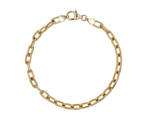 With its modern, understated design, this Stephanie Windsor bracelet also offers an everyday classic. Each of the hand fabricated links of 14K yellow gold connects to create the continuous strand. Perfect alone, it also adds a touch of texture and movement to any bracelet stack.