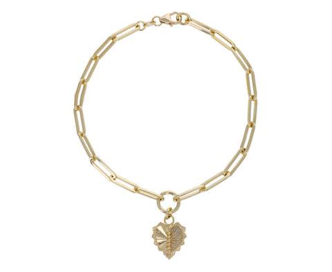 With its detailed design and sweet sentiment, this Foundrae bracelet looks stunning alone or layered with your other favorites. The 18K yellow gold medallion has an engraved surface with a vertical line of dimensional dots splitting it in two. The charm hangs at the center of the 18K yellow gold classic clip chain and is sure to add an effortless vibe to your collection.