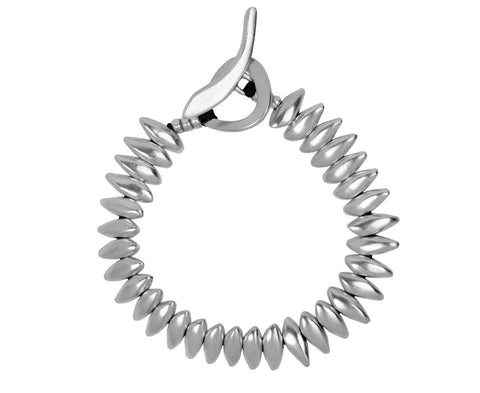 With a tactile allure and earthy, eclectic elegance, this Jill Platner Pomegranate bracelet lends itself to any casual jewelry collection. The hand-sculpted beads of sterling silver are arranged along the length of a crocheted black cord to create a durable, distinctive bracelet. Designed to last, this bracelet is one you will never want to take off!