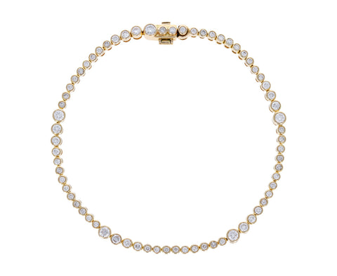 With its fluid shimmer and striking elegance, this stunning ONDYN bracelet is a perfect alternative to the traditional diamond tennis bracelet. Each sparkling white diamond is set in a bezel of 18K yellow gold. Inspired by water, this bracelet moves with you at every turn. Wear it alone or nestled in with your other favorites.