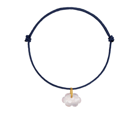 This Marie-Hélène de Taillac rose quartz cloud charm bracelet lends itself to any casual jewelry collection. The cloud attaches to a 22K yellow gold bale and dangles from the center of the adjustable nylon bracelet. Wear it alone or add it to your personal layered bracelet collection for a cool splash of color and texture.