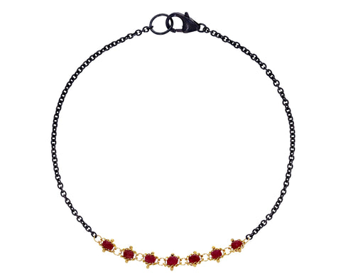 ruby : 7 : 3mm diameter each : 18K yellow gold