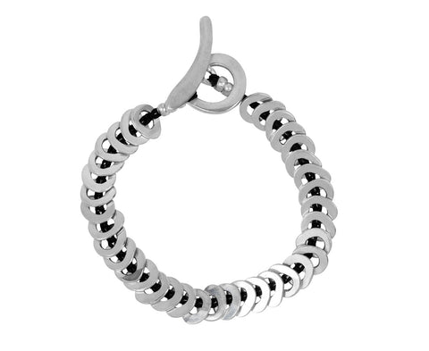 Rings of hand-fabricated sterling silver are connected to the crocheted strand of black Gortex creating a bracelet built for adventure. Designed to withstand surf, sun, sand and saltwater, you can put this bracelet on and forget about it. But don't forget about how good it will look around your wrist.