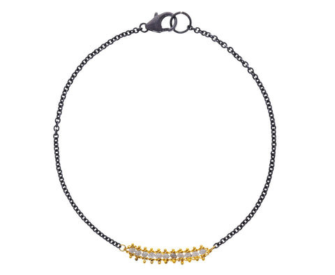 This casual, elegant Amali bracelet is the perfect piece of jewelry for adding to your layered look. The dark strand of oxidized sterling silver is interrupted by an 18K yellow gold and silver diamond bead station directly at its center. With just the right amount of eye-catching contrast and shimmering sparkle, this is a piece you can wear with anything!