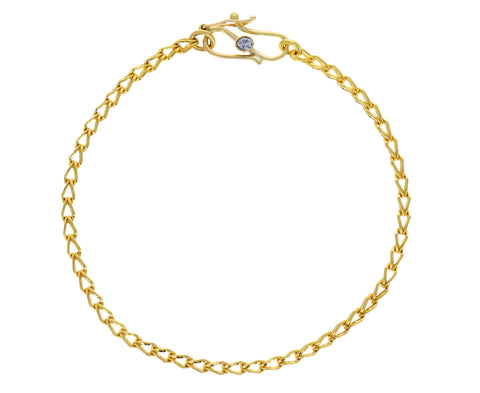 Stunning in its timeless design, this classic Prounis chain can be worn solo or nestled in to a stack of your other favorites. The 22K recycled yellow gold tight loop in loop chain fastens with a diamond set 'S' safety clasp.