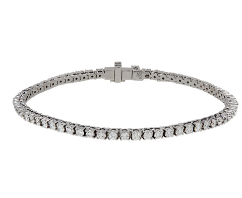 This Melissa Kaye bracelet is a modern, edgy reinvention of the classic diamond tennis bracelet. Shimmering, brilliant cut white diamonds are set in 18K white gold to create a continuous strand of sparkle. Whether you wear it solo, couple it with your watch or add it to a stacked collection of your favorites, the look is as style-defining as it is contemporary.