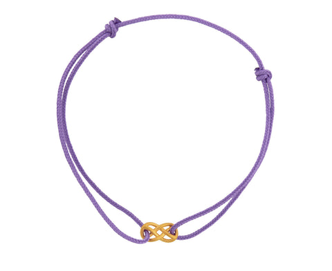 With its playful design and easy-to-wear style, this Marie-Hélène de Taillac charm bracelet is the perfect addition to any casual jewelry collection. Set at the center of the adjustable peony purple nylon cord is a 22K yellow gold twist charm. Wear it alone or add it to your personal layered bracelet collection for an unexpected element of whimsy.