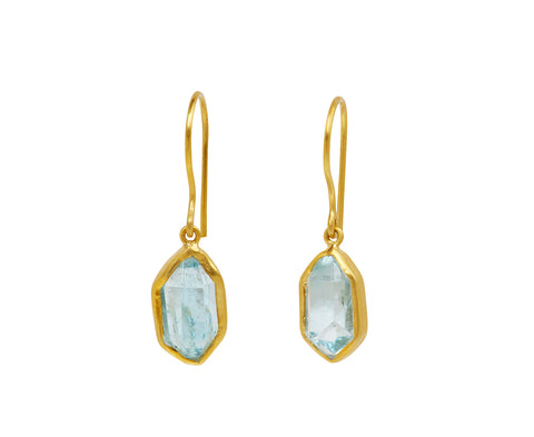 With their cool toned color and earthy elegance, these Pippa Small earrings also have a perfect subtle movement. The angular, raw drops of pale blue aquamarine are encased in an 18K yellow gold bezel and they connect to 18k yellow gold ear wires. Wear them casual or dressed up.