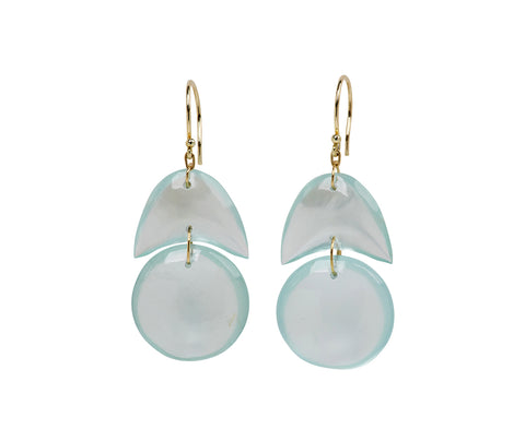 With a modern, sculptural interpretation of an arrowhead's shape, these TenThousandThings earrings also exude a stunning, contemporary sophistication. The smooth, curved beads of aquamarine connect to each other to create a double drop. They hang from 18K yellow gold ear wires.