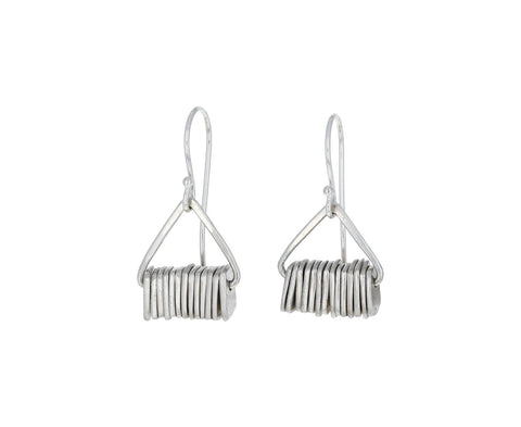 Full of fluid movement and organically inspired design, these Cha Cha Cha earrings by Jill Platner are a striking composition of sterling silver beads. The sterling silver window holds a textured row of sterling silver beads. Casual and contemporary, these make a sophisticated statement and are perfect for every day.