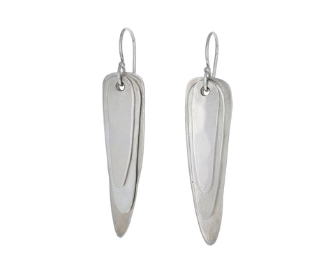 Three hand-fabricated ovals in a gradation of sizes hang together to create a modern interpretation of a dove's wing. The surface of the silver has subtle hammered faceting. You'll find yourself reaching for these earrings everyday.