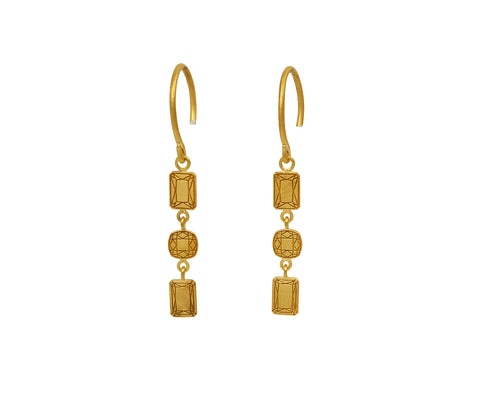 With their subtle details and movement, these Marie-Hélène de Taillac earrings exude an effortless, bohemian elegance. Three 20K gold sequins are made to look like tiny gold gems and fall from the open loop gold ear wires.