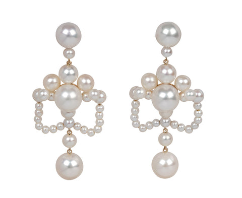 With their striking, modern sophistication, these Sophie Bille Brahe earrings are a stunning alternative to the traditional pair of pearls. The elaborate cascade of round, freshwater pearls hang from 14K yellow gold post backs. The pearls graduate in size, creating a stunning composition. Perfect for any of your more formal events or to dress up something more casual.