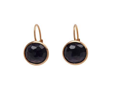 With an easy-to-wear elegance, these Anaconda earrings are a modern interpretation of the traditional colored stone earrings. The rose cut deep purple iolite are covered in a surface of light reflecting facets to reveal their natural tone. The stones are set in a stunning hand-crafted bezel of matte 18K rose gold and connect to 18K rose gold lever backs.