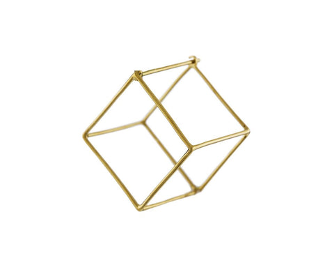 With its elemental, minimal and modern geometry, this Shihara single earring is the perfect balance of form and shape, space and air. The large, open cube is a meticulously hand-crafted earring with a hidden hinge. Each of the polished 18K yellow gold lines connect to create the simple, geometric shape. Striking in its edgy style, pair it with another one of Shihara's earrings or wear solo for a statement-making piece of jewelry.