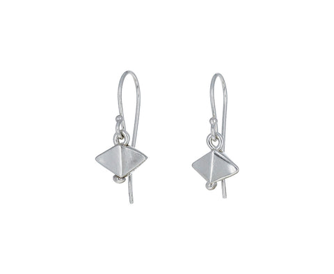 Little diamonds of sterling silver have been hand-finished to a smooth, satiny finish. A raised peak runs vertically through them creating an interesting, sculptural effect. The movement they make while they dangle from the ear wires is subtle and mobile-like. Perfect for the woman who appreciates minimal, modern design, these are as easy-to-wear as they are chic!