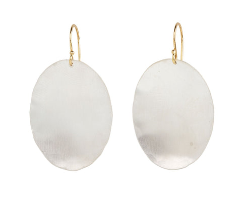 Like tiny works of modern sculpture, these Sarah McGuire domed oval earrings exude an earthy, casual sense of style. The sterling silver ovals are subtly hammered and dangle from 18K yellow gold ear wires. They are the perfect everyday earrings for someone who appreciates understated, quiet design.
