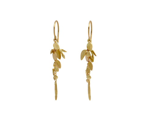 These Sia Taylor earrings offer the perfect balance of texture and gold along with an understated, modern vibe. A series of 18K yellow gold mixed shape drops vary in size and taper as they dangle from the 18K yellow gold ear wires. Ultra versatile, wear them with anything casual or even formal.