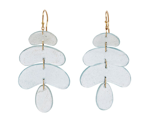 With a modern, sculptural design, these Ten Thousand Things earrings exude a stunning, contemporary sophistication. The smooth, curved slices of pale blue aquamarine connect to each other by tiny 18K yellow gold rings to create a dramatic cascade. The composition hangs from 18K yellow gold ear wires.