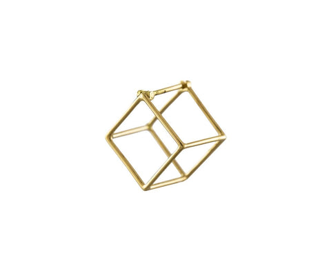 With its elemental, minimal and modern geometry, this Shihara single earring is the perfect balance of form and shape, space and air. The small, open cube is a meticulously hand-crafted earring with a hidden hinge. Each of the polished 18K yellow gold lines connect to create the simple, geometric shape. Striking in its edgy style, pair it with another one of Shihara's earrings or wear solo for a statement-making piece of jewelry.