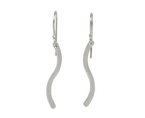 Sleek and sophisticated, these Jill Platner earrings are a perfect option for the jewelry lover with a modern, minimal style. The hand-sculpted sterling silver drops have a fluid finish and slightly hammered surface. With their subtle detail and restrained design, they offer just the right amount of movement and intrigue to any look.