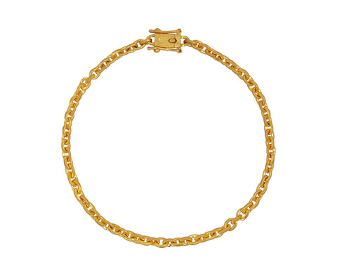 Stunning in its timeless design, this classic Darius chain can be worn solo or nestled in to a stack of your other favorites. The 18K yellow gold fairy chain is covered in a layer of matte 24K yellow gold plating, creating the continuous strand which closes with an 18K yellow gold safety clasp.