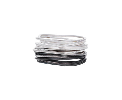 This Disa Allsopp ring - hand-crafted in her London studio - is a tightly wound coil of white sterling silver and oxidized sterling silver wire. The bold look is a bi-metal contrast of monochromatic color and style-defining design. Perfect as a middle finger ring, its size, intricate construction and modern look give it an eye-catching style.