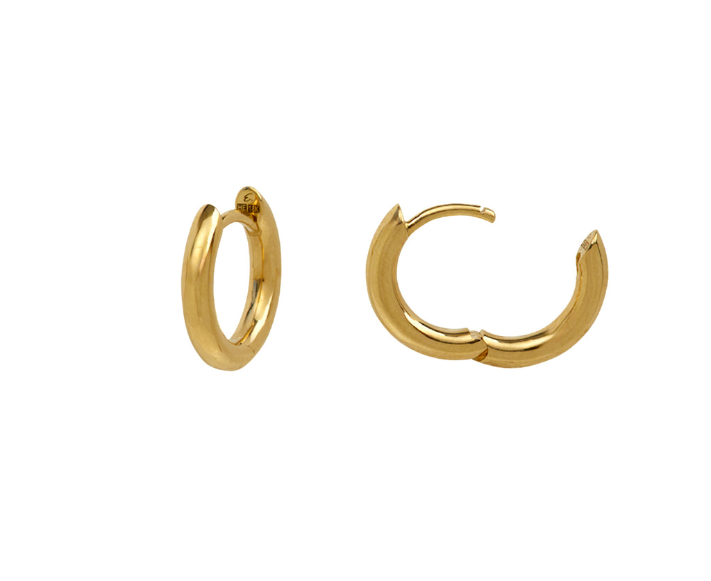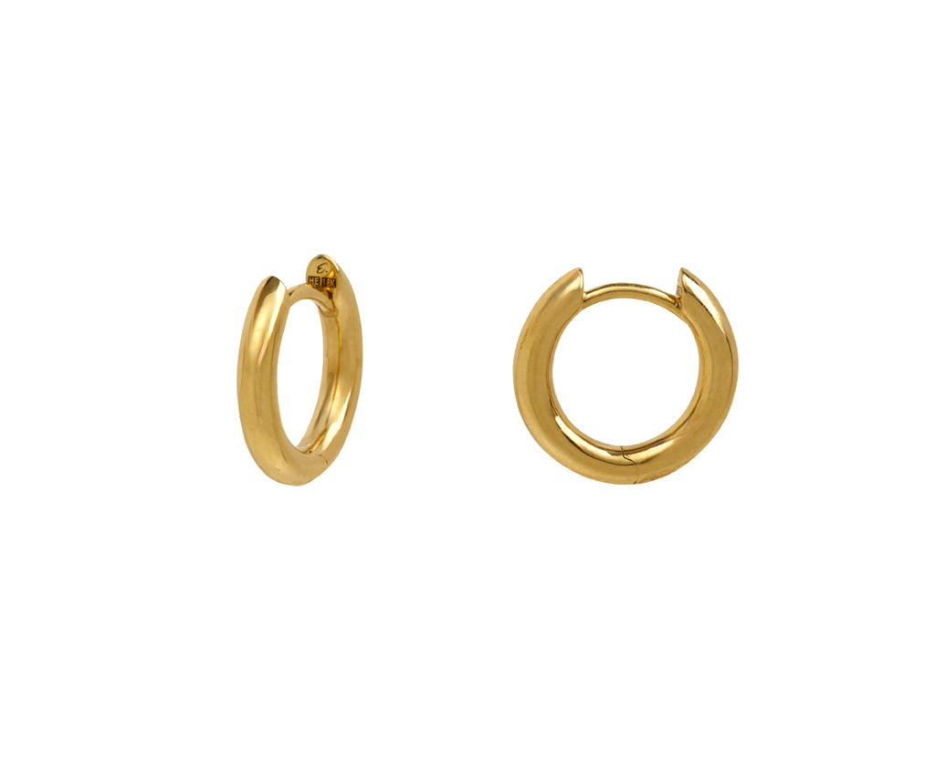 Modern, minimal and perfect for wearing every single day, these Engelbert hoops are your new go-to pair. The 18K yellow gold loops have a polished surface and can be worn as your main earrings or in a multiple piercing.