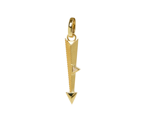 This subtly sparkling Foundrae pendant is the perfect reminder to pursue your dreams. The 18K yellow gold arrow has an engraved surface and has a triangular diamond bezel set asymmetrically. It hangs from the 18K yellow gold push gate bale.