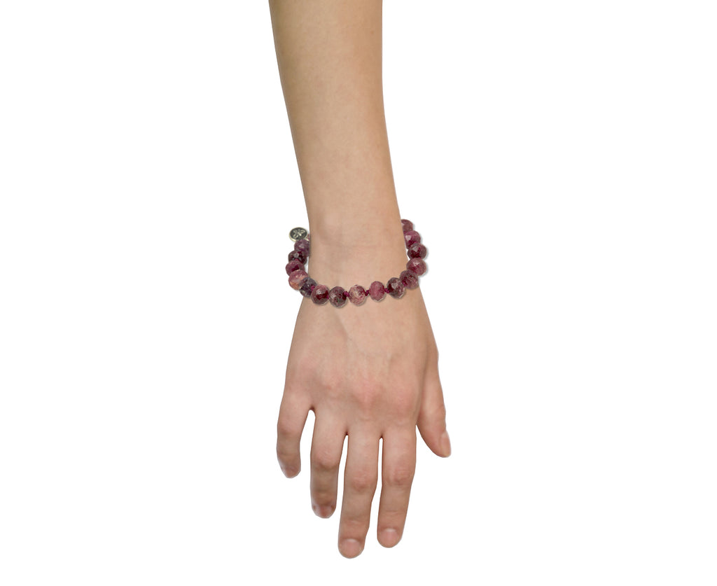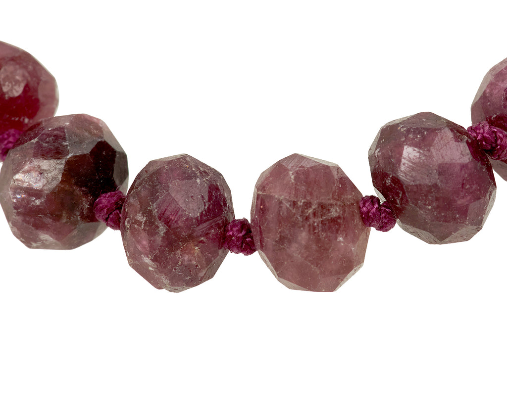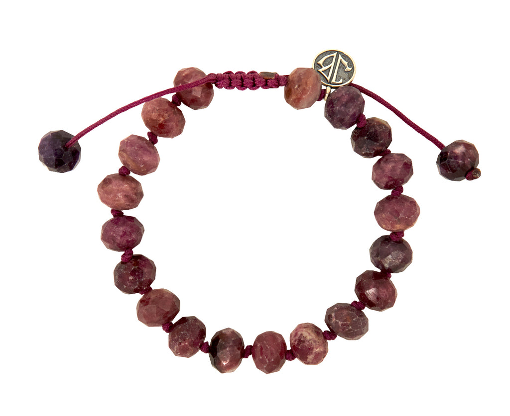 Earthy and elemental, this Joseph Brooks bracelet is all about the intrinsic beauty of the stone. The hand-selected pink tourmaline beads have been faceted to reveal natural characteristics and inclusions and knotted along the deep red cord. Tourmaline is a protective stone believed to shield the wearer from harmful thoughts and actions as well as bring luck and happiness unto oneself.