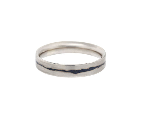This straightforward, modern Pat Flynn ring is perfect for the man who likes minimal jewelry. The comfort band has a domed interior and flat exterior. The 18K palladium band is bisected with an oxidized center line.