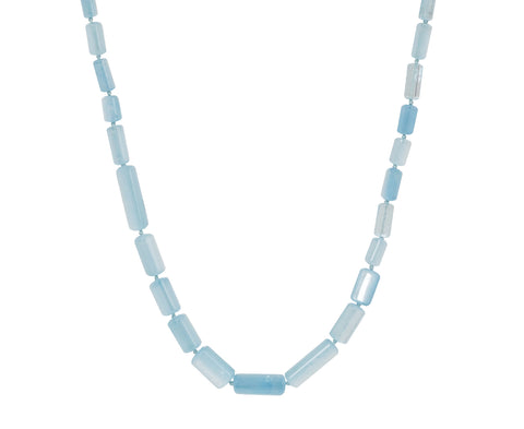 A beautiful mix of silky aquamarine beads give this Brooke Gregson necklace its earthy, yet elegant vibe. Each bead is individually knotted on a silk cord. The ends are capped with 18K yellow gold and a hook and eye clasp closure. Striking enough to be worn alone, or add it to a layered look for a pop of color.