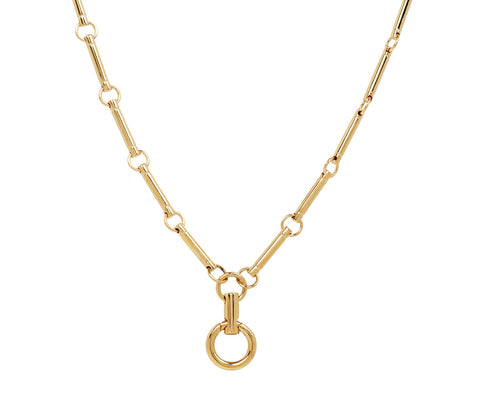 Whether worn alone or with an added pendant, this Foundrae necklace is a modern alternative to the traditional chain. The mid-length necklace is composed of Foundrae's signature golden element links. One chubby annex link hangs from the center of the clockweight pendulum pendant and opens, creating the perfect backdrop for one or more of your favorite Foundrae charms.