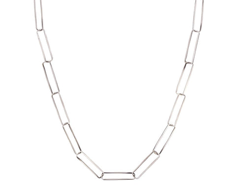 Sophisticated and playful, this paper clip chain necklace by Jane Diaz is an absolute must have. Elongated links comprise the 22" sterling silver chain for a subtle element of interest and texture.  Wear this long, layer it or wrap it around your wrist as a bracelet.