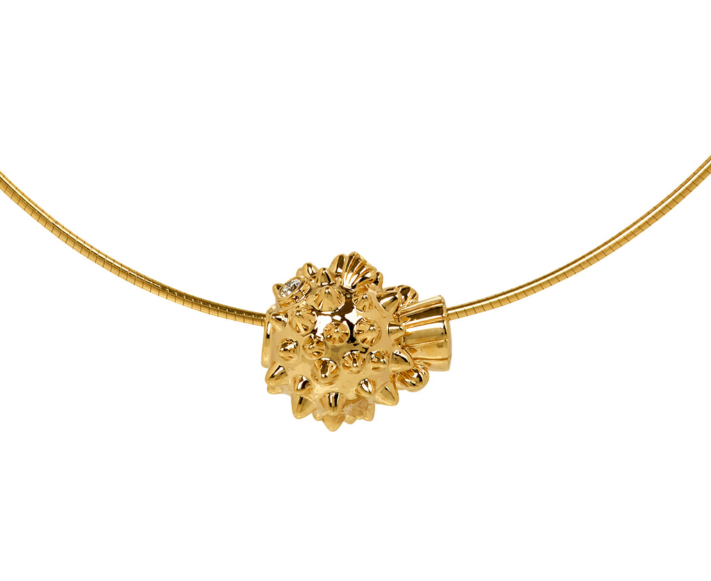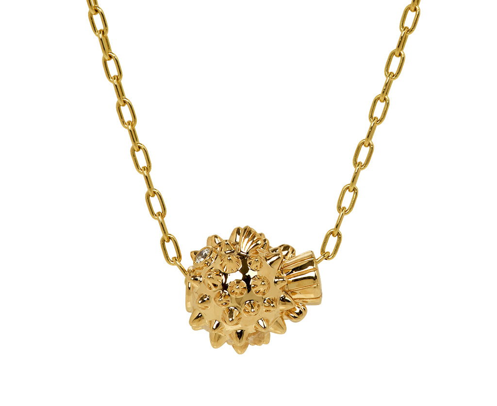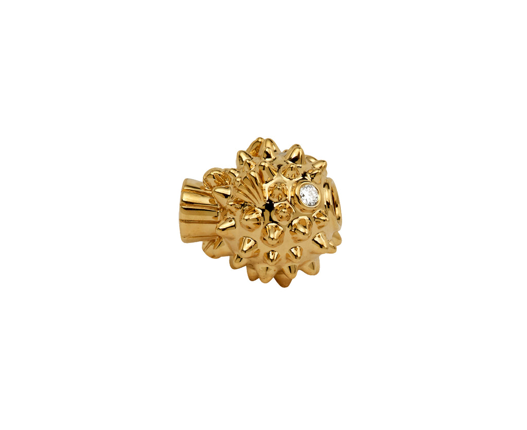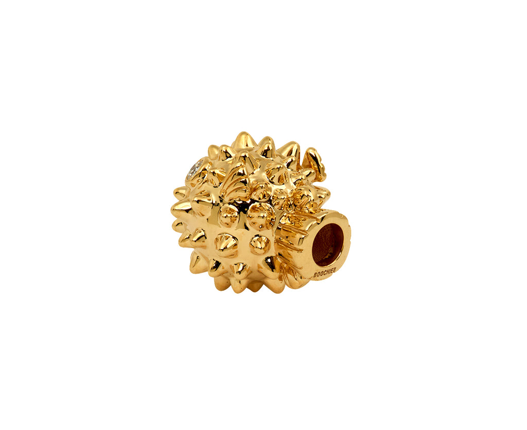 With its statement-making style and three-dimensional design, this Boochier charm can slip on to any of your favorite skinny chains. The polished 18K yellow gold pufferfish has two round diamond eyes and two holes on either side, allowing the chain to slip through. This pendant will add the perfect amount of texture to any look.